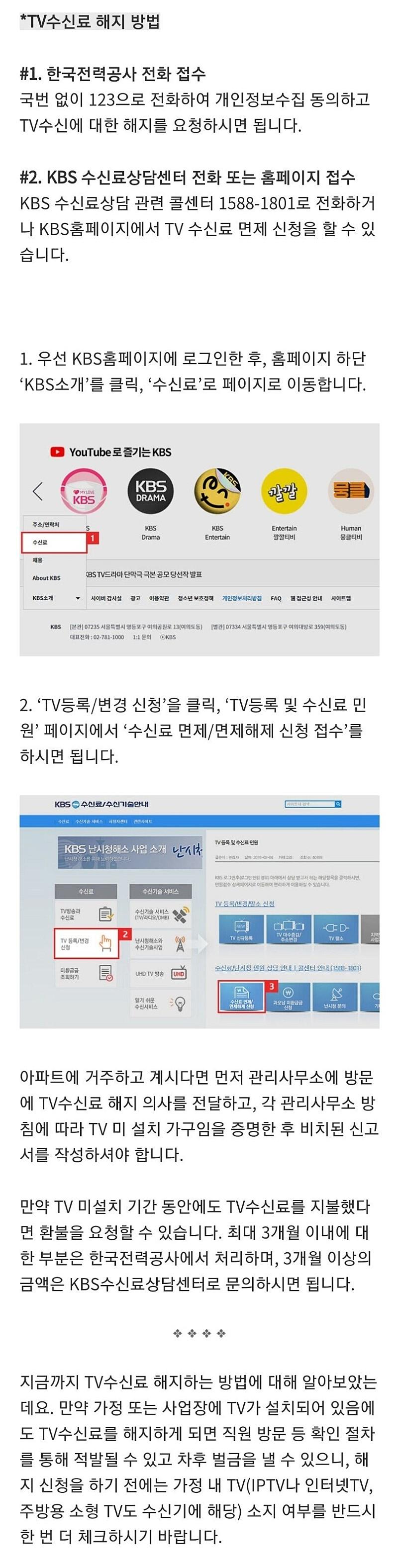 문의처 : KBS(1588-1801) 한전고객센터(국번 없이 123번) - 수신료 선납시 감액
