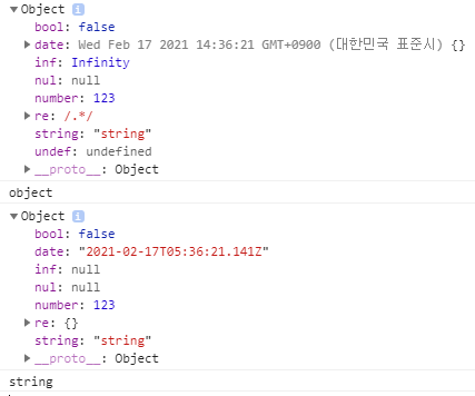 이 방법을 사용하지만 Date()은 string형식으로 undefined 값은 가진 항목은 사라지는 등의 부작용은 있다라는 점 참고하셔야 합니다.