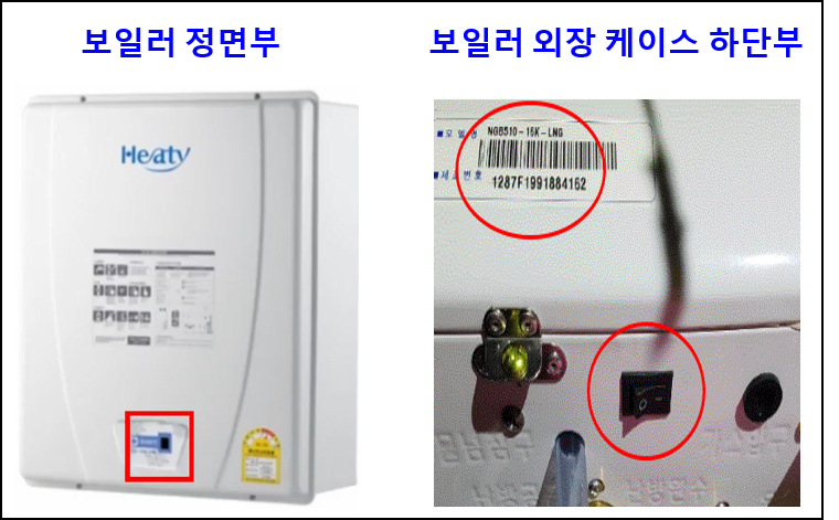 ② 보일러 외장 케이스 하단부 : HEATY Ⅱ, HEATY Ⅲ, 나비엔 콘덴싱 플러스, 나비엔 콘덴싱 PRO, NCN, NSN, 콘덴싱 톡, 콘덴싱 스마트 톡, NGB510