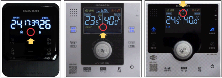 2. 실내온도 조절기에 Wi-Fi 아이콘이 정상적으로 표시되는지 확인하세요.