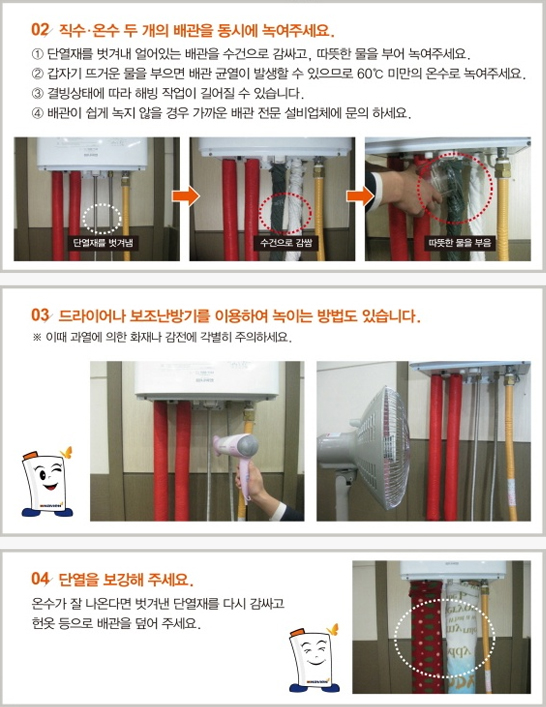 [온수 배관 동결시 해빙 요령]