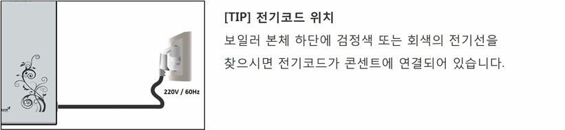 1. 보일러 본체에 연결된 전기코드(220V)를 뽑았다 재연결하여 실내온도 조절기 전원이 들어오는지 확인해 주세요.