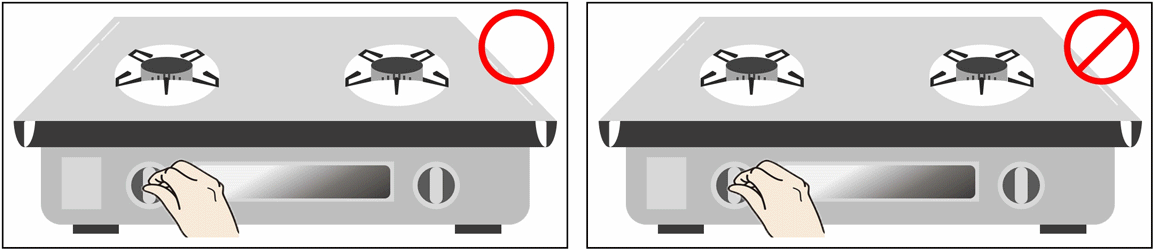 ※ 가스레인지가 켜지지 않는다면 가스공급이 안되는 경우이므로 가스계량기 밸브가 열려 있는지 확인해 주시기 바랍니다.